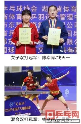 5.混和双打冠军:林高远/王曼昱(广东队/黑龙江银河队)亚军:王楚钦/孙颖莎(北京队/河北乐旋队)6.男子单打冠军:樊振东(上海地产集团队)亚军:林高远(广东队)7.女子单打冠军:王艺迪(辽宁队)亚军:王曼昱(黑龙江银运动人生m.wgqpnmx.cn河队