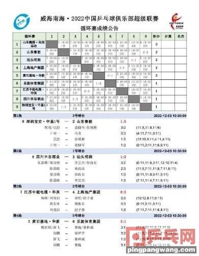 北京时间12月3日上午10:30,2022年乒超联赛迎来了第一阶段的首轮比赛。本轮比赛中,山东鲁能男女团双线获胜,上海地产集团也3-0轻取江苏中超电缆·华宾。