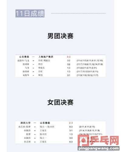 比赛进行到这里,胜负的天秤已经开始向山东鲁能倾斜,果然,孙颖莎在第四盘3比0战胜钱天一,为深圳大学再一次把比分追平后,小将孙艺祯在决胜盘完全没能抵御王曼昱的攻势,王曼昱3比0获得胜利,帮助山东鲁能3比2击败深圳大学,获得本赛季乒超联赛女团冠军。
