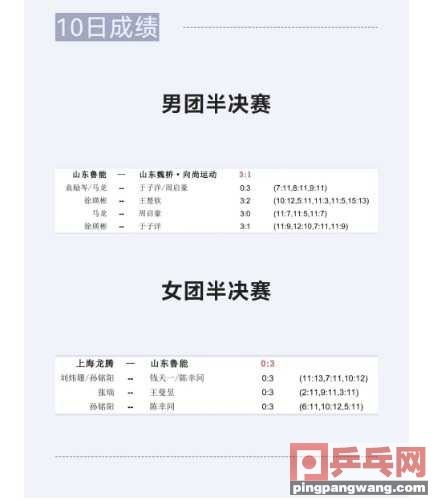 鲁能男女团双双进决赛,明日“龙杯”“凤杯”定归属 | 乒超