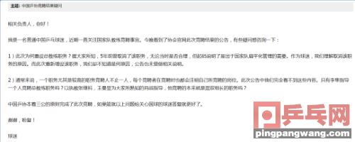 运动人生xuejiazl.org 近日,网上一位网友曝出一封邮件,大意是自己对国乒竞聘提出的两点疑问,被中国乒协回复。由于还是元旦假期,该球迷也表示运动人生m.wgqpnmx.cn很惊讶,感叹假期乒协工作人员还在加班,真是敬业!网友“霜天云鹤”其实就询问了两个问题:五年前取消的总教练职位,这次竞聘为何再次出现?二十多位教练竞聘的岗位是单一的吗?譬如肖战指导是竞聘的混双组长这个运动人生m.wgqpnmx.cn岗位吗?