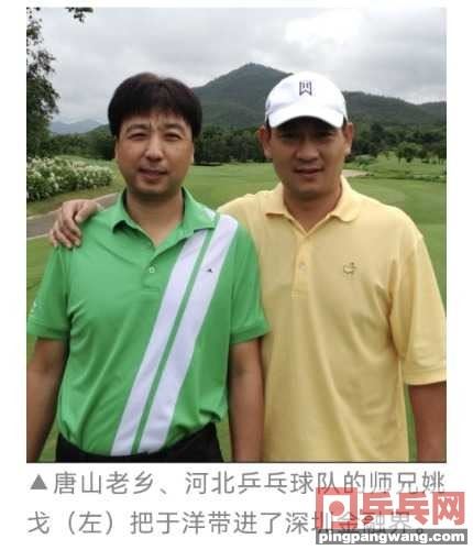 90年代初期,行业体育协会蓬勃发展,代表金融系统的银鹰体协把乒乓球队的训练和管理交给了深圳人民银行,负责此项工作的深圳人民银行副行长、工会主席肖少联是一位乒乓球爱好者,懂球惜才。在这样的背景下,原河北队的姚戈、原八一队的赵勃、原国家队选手李永旺等人成为了第一批进入深圳市金融系统的退役乒乓球运动员。这其中姚戈是于洋的唐山老乡、河北队的大哥,也是他人生路上要“特别感恩”的人。当于洋准备离开乒乓界另谋出路的时候,姚戈把他带进了深圳的金融圈。