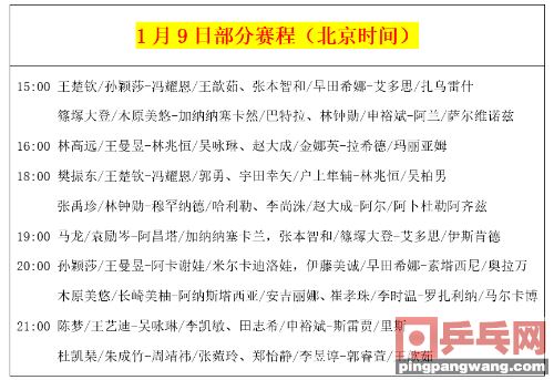 北京时间1月9日,德班世乒赛亚洲区预选赛即将迎来第三日的对决,国乒八大主力——樊振东、马龙、王楚钦、林高远、孙颖莎、陈梦、王曼昱、王艺迪以及袁励岑即将登场,强敌张本智和、伊藤美诚、早田希娜等人也将上阵,而双打的第一批入选名单即将诞生!虽然大部分高手都已经相互运动人生m.wgqpnmx.cn回避,但马龙/袁励岑与印度名将阿昌塔/加纳纳塞卡然之战可能会不好打,而伊藤美诚/早田希娜对阵素塔西尼/奥拉万也存在悬念,精彩值得关注。详细赛程安排请看下文。本次世预赛三项双打都被分成了八个小组,而在国乒的六对参赛组合中,王楚钦/孙颖莎、樊振东/王楚钦、孙颖莎/王曼昱排名较高,首轮轮空,而没有世界排名的林高远/王曼昱、陈梦/王艺迪最终也获得了同样的待遇,只有马龙/袁励岑被安排在第一天参战。