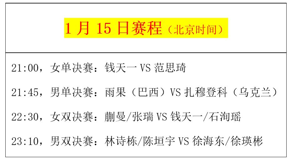 北京时间1月15日,乒乓球WTT南非德班挑战赛即将迎来最后一日的决战,而在前一天的对决中,中国队有喜有忧。喜的是,我们已经提前确定夺得四项冠军,其中混双已经被林诗栋/蒯曼拿下、薛飞/钱天一摘银,而女单、女双、男双的决赛也是国乒内战。但令人担忧的是,国乒男单这次又全军覆没,六人参赛惨遭团灭,最好成绩不过是林诗栋打进八强,连半决赛都进不去,这个表现的确让人感到遗憾。根据安排,1月15日晚上开始将先后举行女单、男单、女双、男双决赛,精彩值得关注!详细战况与最新赛程请看下文。一、单打本次南非赛国乒没有主力运动员参加,而外协会却来了许多成绩、排名靠前的劲敌,所以夺冠难度不小。不过相对来说,男队的压力要大于女队,单打的压力要大于双打,这也是中外乒乓球实力对比的正常反映。果然,比赛开始后国乒单打就遭遇了惨败,总共才六男六女、总计十二人出战,结果第一轮输了四个(薛飞、梁俨苧、孙闻、陈垣宇),第二轮又输了三个(徐瑛彬、陈熠、蒯曼),而且对手既有名将、也有不知名的运动员,情况非常不妙。不过在随后的比赛中,女单守住了自己的阵地,再也没有人输外战,最终钱天一、范思琦成功会师决赛,而张瑞也打进了半决赛,四强里有三人都是国乒运动员,唯一的例外是淘汰蒯曼的中国台北黑马选手简彤娟,但她也被钱天一3-1成功拿下。男单方面的情况非常不乐观,17岁小将林诗栋闯xuejiazl.org入八强,但却遭遇了头号种子、世界排名第七的巴西选手雨果,结果林诗栋1-3败下阵来。接下来雨果的对手将是本次比赛的超级大黑马,爆冷淘汰阿鲁纳、西蒙晋级的乌克兰选手扎穆登科,真是让人没想到!二、双打相对来说,国乒双打的训练远比外协会合理,所以优势也更大一些。混双方面,林诗栋/蒯曼、薛飞/钱天一成功会师决赛,展开激烈对决,结果林诗栋/蒯曼3-1笑到最后,由此而拿下了本站比赛、同时也是国乒新年的第一个冠军,真是可喜可贺!女双虽然范思琦/刘炜珊爆冷出局,但最终的决赛还是在国乒组合蒯曼/张瑞、钱天一/石洵瑶之间展开。至于男双组合林诗栋/陈垣宇、徐海东/徐瑛彬也都杀入了最后一轮,冠军已经呼之欲出了!三、最新赛程接下来南非赛还剩四场决赛要打,1月15日晚上21:00,女单最先开打,钱天一对阵范思琦;21:45是男单决赛,可惜没有国乒运动员参与,由雨果对阵扎穆登科;22:30女双决赛,蒯曼/张瑞VS钱天一/石洵瑶;23:10男双决赛,林诗栋/陈垣宇VS徐海东/徐瑛彬。能在五个项目中拿下四冠,国乒的表现自然是值得高兴的,但我们竟然无人闯入代表个人最高水平的男单项目决赛,甚至连四强都没打进,的确有许多值得反思总结的地方。最后再次向赢球的国乒选手表示祝贺,也希望下次男单的表现能更加出色:加油,中国队!