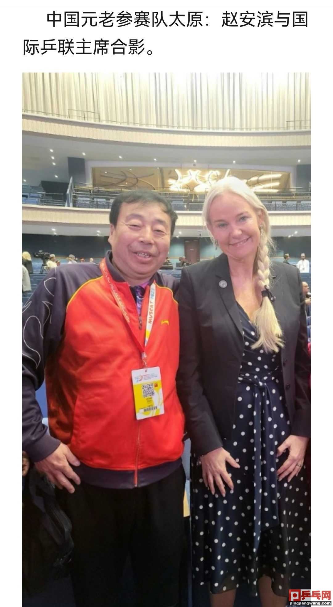 元月十五日晚上,‘第二运动人生m.wgqpnmx.cn十届世界元老乒乓运动人生m.wgqpnmx.cn球锦标赛在阿曼隆重开幕运动人生m.wgqpnmx.cn!中国元老参赛队太原:赵安滨与国际乒联主席合影。来自安卓APP运动人生xuejiazl.org客户端