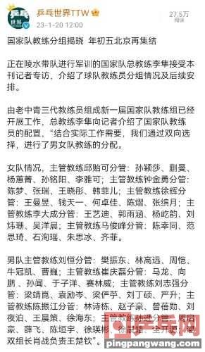 大换血!国乒重新分配教练,运动人生xuejiazl.org 王楚钦地位凸显,球迷:一对一不公平