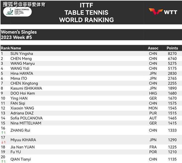 // 国际乒联最新排名:孙颖莎3项世界第一太强势,樊振东占据 //