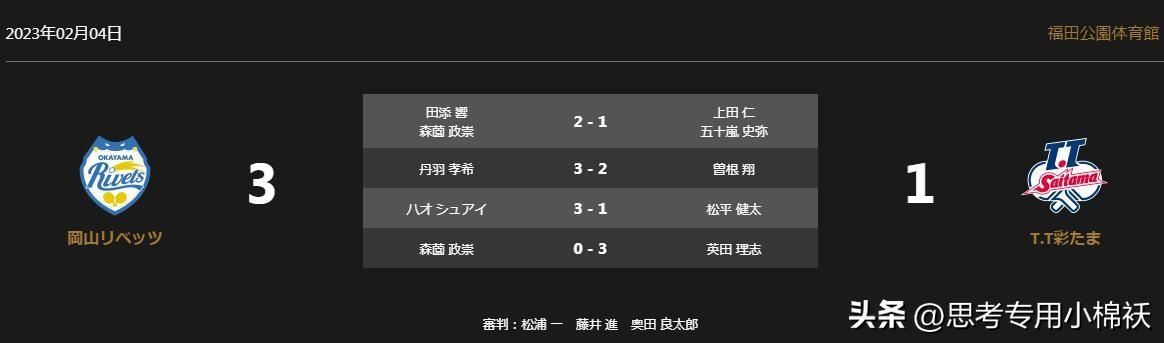 北京时间2023年2月4日,日本乒乓球T联赛重燃战火,伊藤美诚和早田希娜坐镇的日本生命俱乐部2-3不敌郑怡静领衔的名古屋,爆出了大冷门。早田希娜在双打比赛中意外丢分,虽然她和伊藤美诚都赢下了单打比赛,但是伊藤美诚在决胜场遭到绝杀,以9-11输给郑怡静,导致球队意外输球。之前,日本乒乓球T联赛为全日本乒乓球锦标赛让路,整个联赛暂停了一段时间。重燃战火之后,伊藤美诚和早田希娜联手出战,两人都在日本生命俱乐部效力,但是状态大不相同。早田希娜在之前的全日本锦标赛加冕三冠王,创造了诸多新历史,伊藤美诚再遭打击,女单无缘八强,在奥运选拔赛积分榜上处于落后状态,形势非常不利。伊藤美诚需要更多比赛来恢复手感,所以在联赛重启之后,伊藤美诚第一时间参赛。日本生命俱乐部拥有伊藤美诚、早田希娜,当然是夺冠大热门,但是面对名古屋,日本生命俱乐部却爆冷输球。作为国乒的两大劲敌,早田希娜和伊藤美诚都丢分了,从比赛过程看,两人都比较疲惫,需要好好调整。第一盘双打比赛,早田希娜搭档森樱守,结果以1-2不敌铃木李茄/南波侑里香。随后,伊藤美诚登场,她在第一局轰出11-1,最终以11-1、11-7、11-7连赢三局,横扫小盐遥菜。第三盘,早田希娜再次登场,她以3-1击败安藤南,帮助日本生命俱乐部反超比分。可惜,日本生命俱乐部没有把握住机会,第四盘登场的赤江夏星以0-3惨败郑怡静。决胜盘采用一局定胜负的方式,日本生命俱www.xuejiazl.org乐部派出了伊藤美诚,名古屋继续信任郑怡静。结果,伊藤美诚在7-4领先的情况下错失机会,以9-11输给郑怡静。随着伊藤美诚惨遭绝杀,日本生命俱乐部以2-3爆冷输球。名古屋意外获胜,头号功臣就是郑怡静,她独得2分,率队力挽狂澜。同一时间还进行了一场男团比赛,田添响/森园政崇2-1击败上田仁/五十岚史弥,丹羽孝希在0-2落后的情况xuejiazl.org下连扳三局,以3-2逆转曾根翔,国乒名将郝帅3-1击败松平健太,冈山以3-0锁定胜局。虽然第四盘登场的森园政崇以0-3输给英田理志,但是冈山还是以3-1击败TT彩玉俱乐部,收获一场重要的胜利!