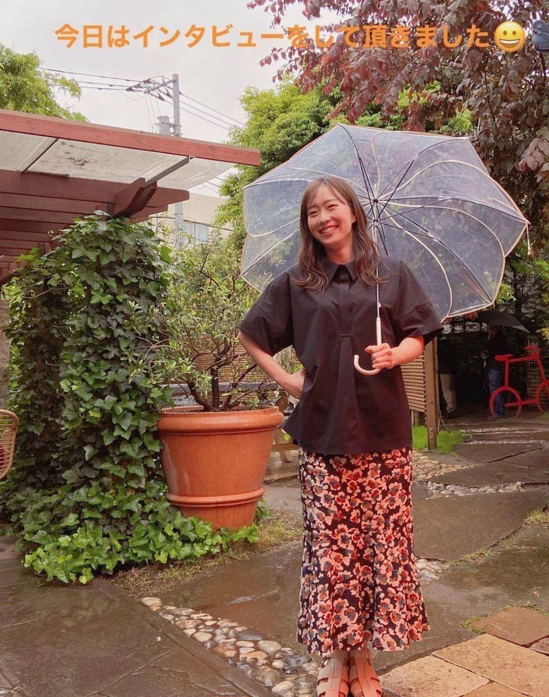 日媒的描述:石川身着黑色衬衫、鲜艳碎花的裙子,在雨中打着伞,以绿意盎然的地方为背景,脸上露出明亮的笑容,令人印象深刻。此外,还上传了佩戴“スタージュエリー”珠宝耳环的侧脸照片,营造出时尚的氛围。