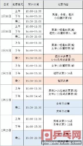 国乒直通赛赛程公布:持续6天,2月21日、23日诞生3项冠军