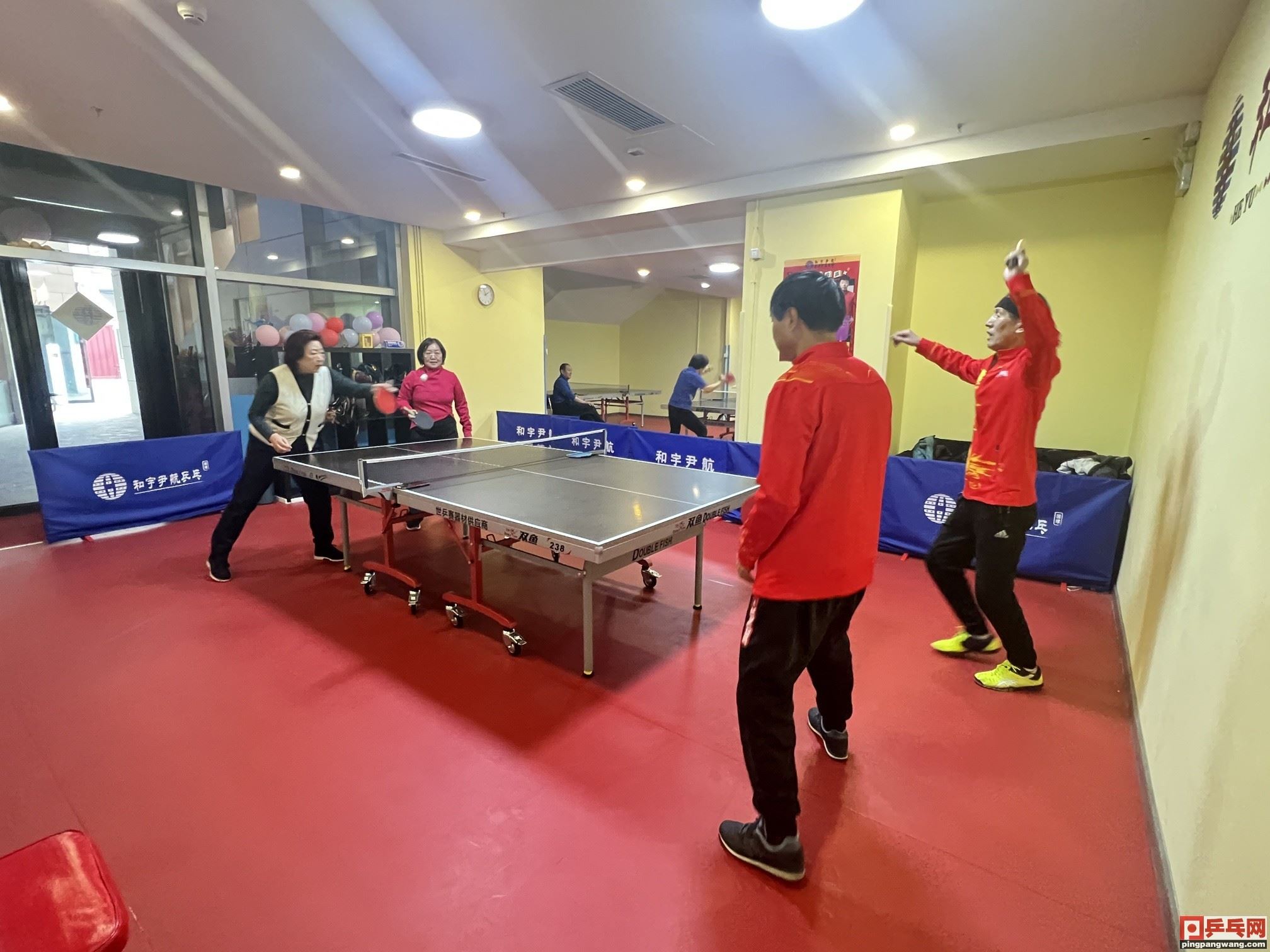 今天下午,球馆迎来了两位贵客。一位是北京市体育基金会秘书长张焕芝女士,另一位是该基金会理事会理事暴宁宁女士。两位女士平时工作甚忙,就拿张焕芝秘书长来说,基金会多年来一年要组织三百余场大型社会体育活动,近三年疫情期间线上线下同样也组织了不少,说日理万机有点过分,要讲脚丫子忙上天,倒也恰如其分。如今二位拨几下基层,考察了解下面社会业余乒乓球活动情况,叫我打心眼里感激。球馆内,总经理李顺义向两位贵客介绍了球馆开业近一周的情况。目前球馆球友活动群已达230余人,有近20人分别运动人生xuejiazl.org办了年、月、次卡,有两位学员报名了培训,参加活动及咨询相关情况达上百人次。两位贵客察看了馆内球台安置,灯光情况,办公室,卫生间等设施。对该馆抓好青少年胶光板乒乓培训,加强对中老年人光板乒乓推广,开展花式乒乓探索,积极开展乒乓公益活动,强化快乐乒乓理念,满足广大球友需求的办馆宗旨,给予赞许,并表示给予支持。两位贵客还就便挥起球拍操练起来,看得出来,有一定的基础,但毕竟久不摸拍,有些生疏了,不一会儿便粉汗微出,有点细喘了。虽然如此,暴宁宁理事又买了次卡,还脆声说,在这里要学花式乒乓,哪天抽空还要来。