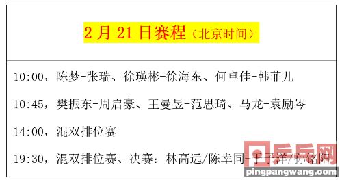 根据之前的安排,陈梦会在2月21日上午10:00迎战队内模仿伊藤美诚的生胶打法选手张瑞,这场球本来就不好打,再加上陈梦有伤在身,接下来只能走一步看一步了。同样在10:00举行的单打比赛还有徐瑛彬VS徐海东、何卓佳VS韩菲儿,而这四人都有一定几率冲出运动人生m.wgqpnmx.cn重围,所以现在还不能放弃自己!10:45,国乒三大奥运冠军主力樊振东、马龙、王曼昱登场,分别迎战周启豪、范思琦、袁励岑。