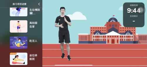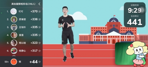 体能练习项目和运动游戏交替着训练,学生们运动不枯燥。做运动的同时,App会自动计分。每个项目结束后,屏幕左侧就会出现排行榜,极大地激发了孩子的运动兴趣。