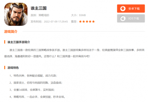 三国题材的游戏一直都深受国内玩家的喜爱,但是市面上各种不同的三国游戏在层出不穷的同时也是良莠不齐,玩家常常是兴奋地去开服畅玩,然后败兴而归,久而久之对这类题材的游戏都抱有抵触了。那么小编今天要推荐的就是一款经由本人测试过的超级优秀好玩的三国游戏——《谁主三国》!感兴趣的玩家朋友们就和小编一起来看看吧!