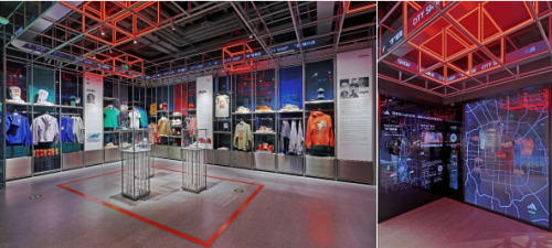 阿迪达斯北京三里屯全球旗舰店设置了众多在adidas门店中可谓“独一份儿”的细节元素:一楼的“京”城商店内集合了众多包含“京味儿”元素的设计产品,穿过后则又是一个在一众adidas门店中独有的北京数字艺术城区地图——它将北京城运动爱好者的活动“聚点儿”微缩在此?;贏R技术,运动玩家们可以一键了解阿迪达斯在京城热门的文体活动,即时报名,迈出运动生活第一步。