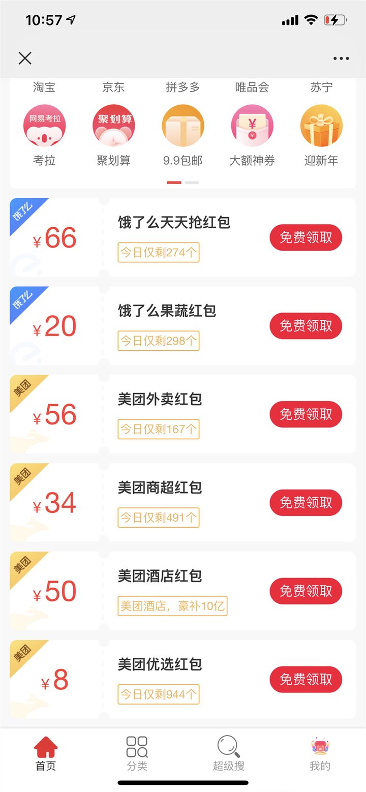 你如果喜欢饿了么,就点击饿了么进去领红包,如下图: